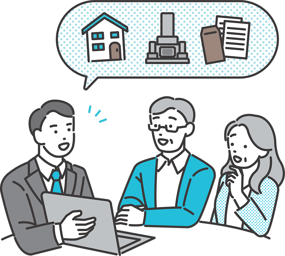 当事務所では、相続や遺言書作成だけでなく、株式・不動産・自動車・貴金属等の資産の売却のサポートも行っています。不動産やその他の資産の処分に関する複雑な手続きも、広範囲なネットワークを活かしてスムーズに進めることができるため、相続財産の売却をトータルにサポートします。